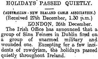 1920: Report from “Down Under” on Christmas in Ireland during War of Independence.