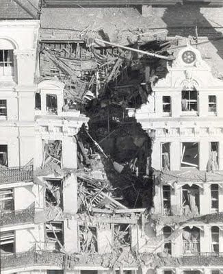 The bomb destroyed a bathroom that Mrs. Thatcher had been in just a few minutes previously.
