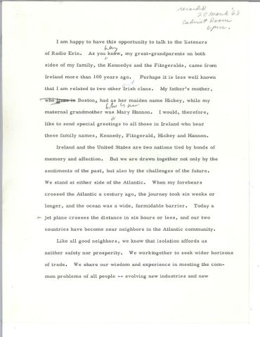 1963: JFK records an address to the “Irish People” to be broadcast by RTE, the Irish national broadcaster.